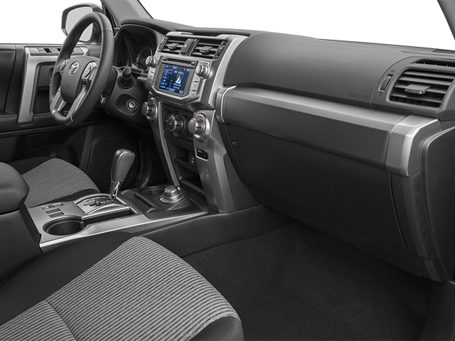 Burlington CJDR is proud to offer this good-looking 2014 Toyota 4Runner an absolutely good-looking SUV with the following Features: 17 x 7.5 Unique Off-Road Alloy Wheels, ABS brakes, Alloy wheels, Body Color Heated Mirrors, Compass, Electronic Stability Control, Heated door mirrors, Heated Front Bucket Seats, Heated front seats, Illuminated entry, Low tire pressure warning, Power moonroof, Power Tilt & Slide Moonroof w/Sunshade, Remote keyless entry, Traction control, 3.727 Axle Ratio, 4-Wheel Disc Brakes, 8 Speakers, Air Conditioning, AM/FM radio: SiriusXM, Anti-whiplash front head restraints, Auto-Dimming Rear-View Mirror, Auto-dimming Rear-View mirror, Black Roof Rails, Brake assist, Bumpers: body-color, CD player, Driver door bin, Driver vanity mirror, Dual front impact airbags, Dual front side impact airbags, Exterior Parking Camera Rear, Front anti-roll bar, Front Bucket Seats, Front Center Armrest, Front fog lights, Front reading lights, Front wheel independent suspension, Garage Door Opener, Garage door transmitter: HomeLink, Knee airbag, Leather Shift Knob, Occupant sensing airbag, Outside temperature display, Overhead airbag, Overhead console, Panic alarm, Passenger door bin, Passenger vanity mirror, Power door mirrors, Power driver seat, Power passenger seat, Power steering, Power windows, Radio: Entune Premium Audio with Navigation, Rear anti-roll bar, Rear seat center armrest, Rear window defroster, Rear window wiper, Roof rack, Security system, Softex Synthetic Leather Seat Trim, Speed control, Speed-sensing steering, Split folding rear seat, Spoiler, Steering wheel mounted audio controls, Tachometer, Telescoping steering wheel, Tilt steering wheel, Trip computer, Turn signal indicator mirrors, Variably intermittent wipers, and Voltmeter.