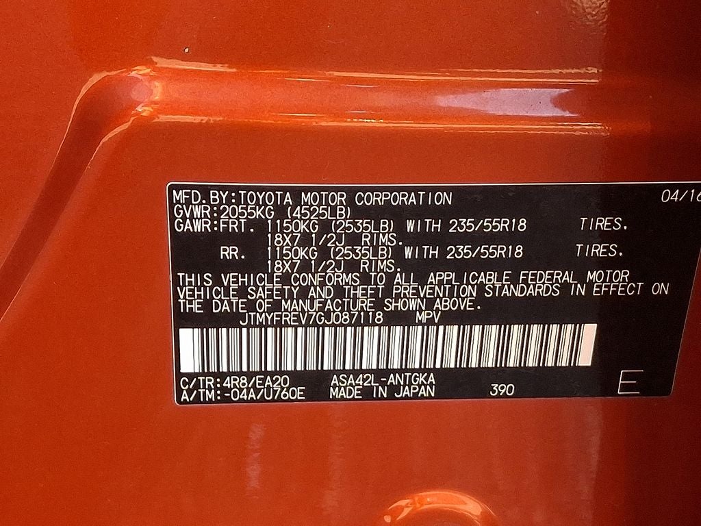- Vehicle Name: Toyota RAV4
